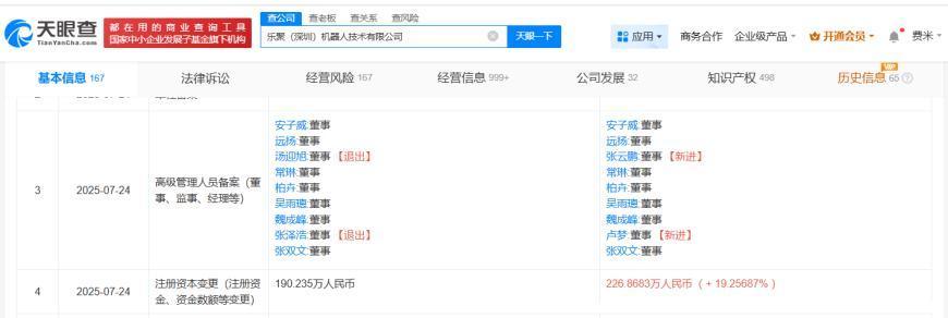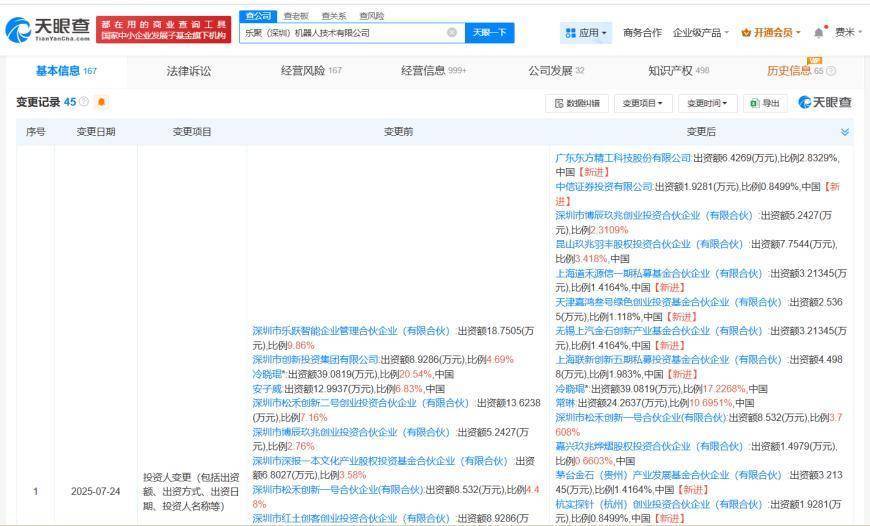 天眼查App显示,近日,乐聚(深圳)机器人技术有限公司发生工商变更,新增东方精工(002611)、中信证券投资有限公司、茅台旗下茅台金石(贵州)产业发展基金合伙企业(有限合伙)等为股东三亚股票配资公司,注册资本由约190万人民币增至约227万人民币,同时部分高管发生变更。