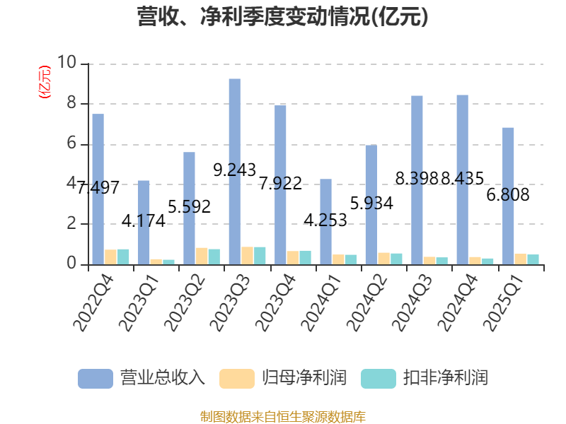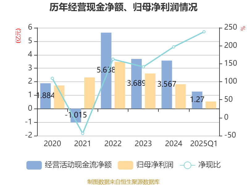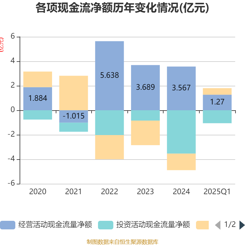 截至2025年一季度末在线配资平台网址,公司经营活动现金流净额为1.27亿元,同比增长29.8%;筹资活动现金流净额5327.56万元,同比增加1846.56万元;投资活动现金流净额-1.06亿元,上年同期为-8309.83万元。
