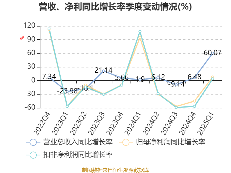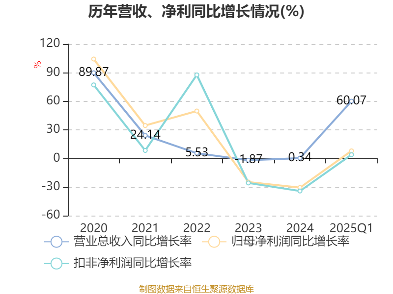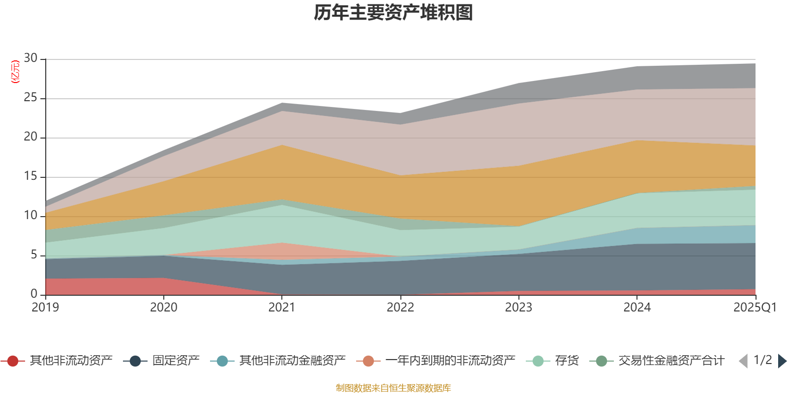 资产重大变化方面,截至2025年一季度末,公司应收票据及应收账款较上年末减少23.48%,占公司总资产比重下降5.65个百分点;货币资金较上年末增加13.11%,占公司总资产比重上升2.6个百分点;交易性金融资产合计较上年末增加1652.39%,占公司总资产比重上升1.55个百分点;其他非流动金融资产较上年末增加12.33%,占公司总资产比重上升0.76个百分点。