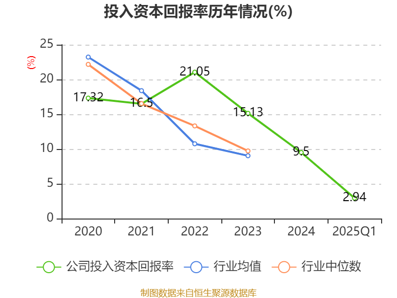 盈利能力方面, 2025年一季度公司加权平均净资产收益率为3.29%,同比上升0.26个百分点。公司2025年第一季度投入资本回报率为2.94%,较上年同期上升0.36个百分点。