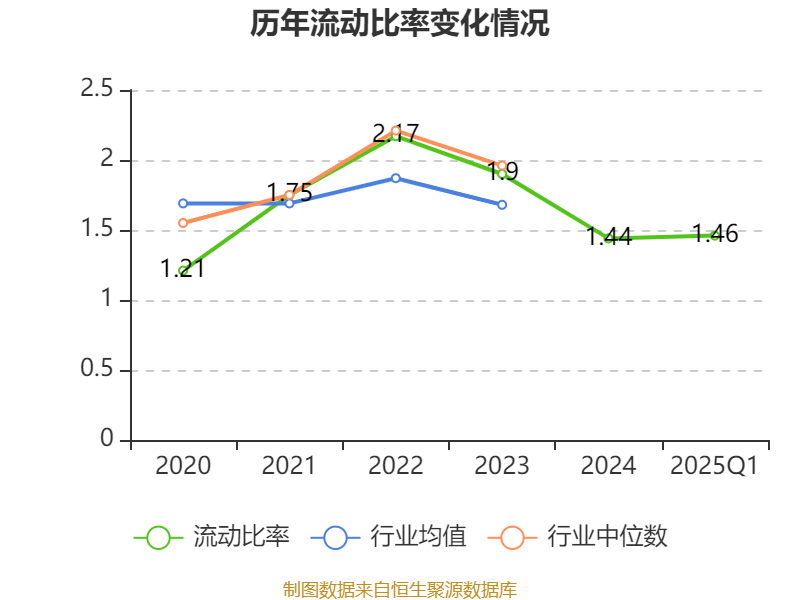 2025年第一季度,公司流动比率为1.46,速动比率为1.09。